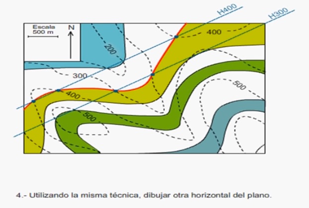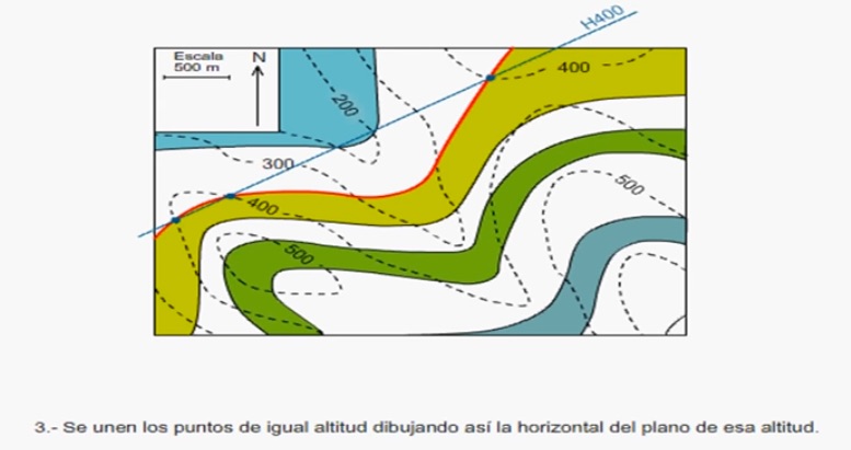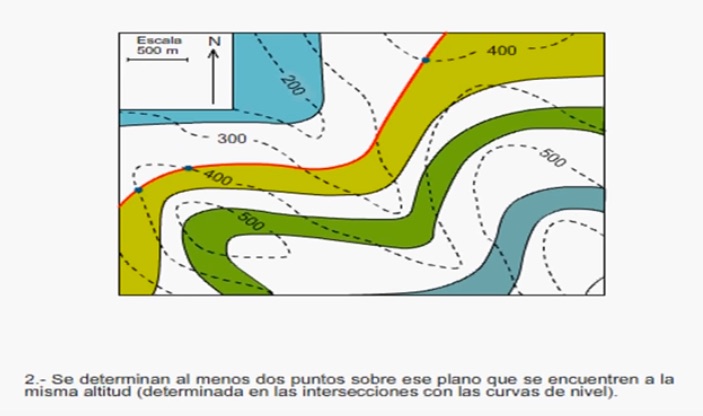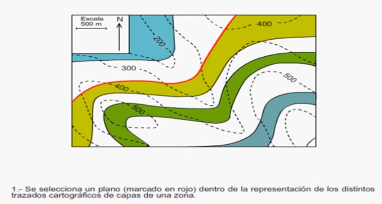 Sobre ese perfil señalaremos los puntos de afloramiento de los distintos contactos entre capas que vayan apareciendo a lo largo de la línea de corte.