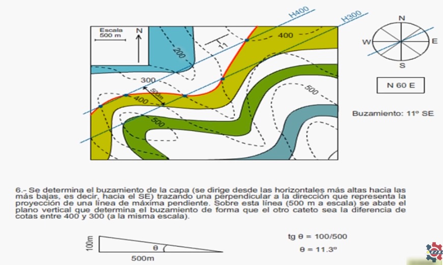 Cómo calcular la dirección y el buzamiento de una capa