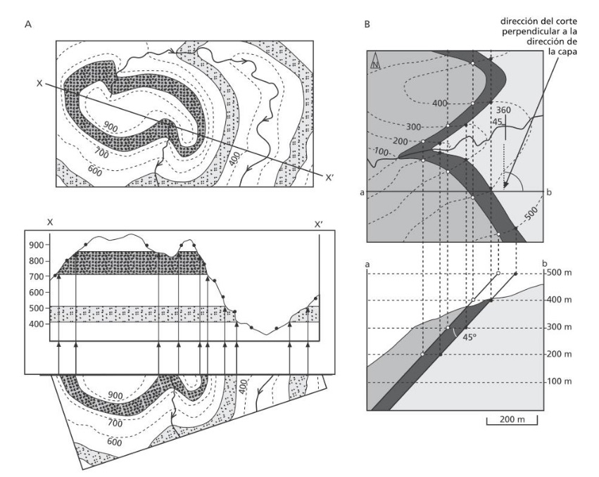 Para que el corte sea real es necesario realizarlo en una dirección lo más perpendicular posible a la dirección de la mayoría de los estratos que aparezcan el mapa y ser muy meticuloso con las medidas de los ángulos de buzamiento.