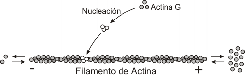 Una de las propiedades de la actina F es su polaridad +/-, es decir, presentan un comportamiento diferente entre sus dos extremos: