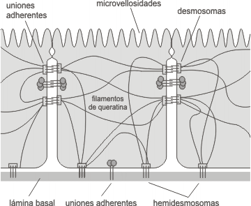 Uniones de anclaje de los filamentos intermedios en células epiteliales