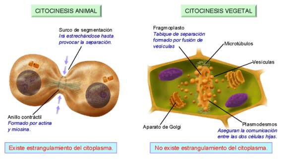 y en células vegetales (no se forma anillo contráctil)