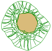 Los filamentos intermedios forman redes que conectan la membrana plasmática con la envoltura nuclear, formando una red continua a su alrededor. Una red similar se encuentra en la cara interna de la envoltura (lámina nuclear)