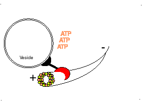 Proteína kinesina transportando una vesícula utilizando un microtúbulo |