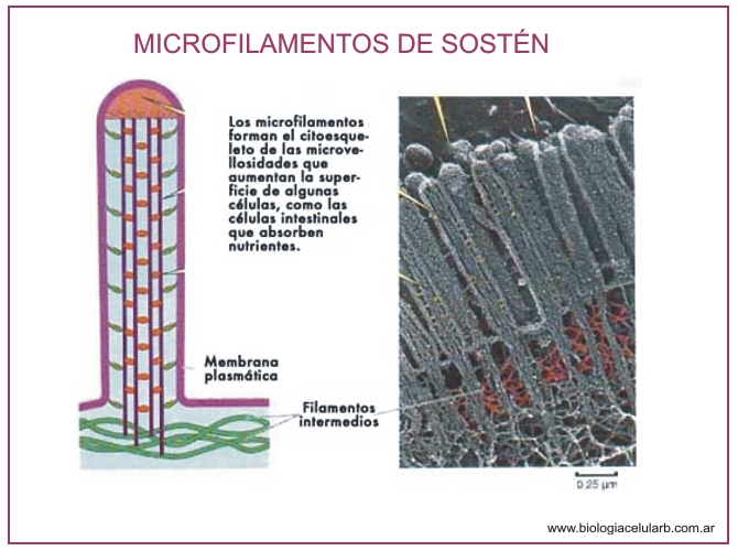 - Filamentos de actina o microfilamentos (7-8 nm)
