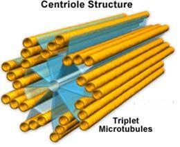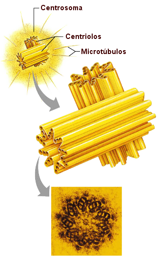 Los centriolos, sin embargo, no desempeñan papel alguno en la polimerización y dirección de los microtúbulos, excepto en sus apéndices, que son prolongaciones proteicas ancladas a los centriolos.