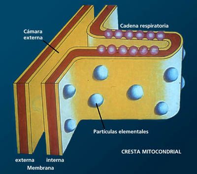 Se estima que la membrana interna de una mitocondria, en una célula hepática, tiene mas de 10.000 copias de cadenas transportadoras de electrones y complejos ATP sintetasas