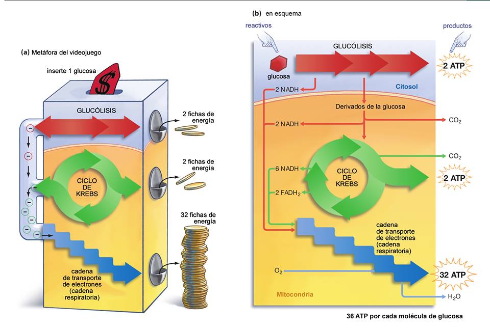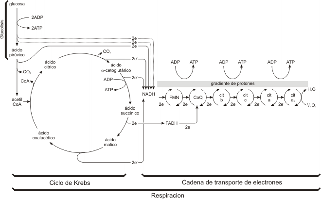 Relación entre la glucolisis-ciclo de Krebs y la cadena de transporte electrónico