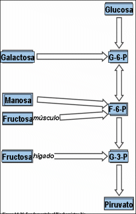 Vías de entrada de diferentes monosacáridos al catabolismo de los azúcares