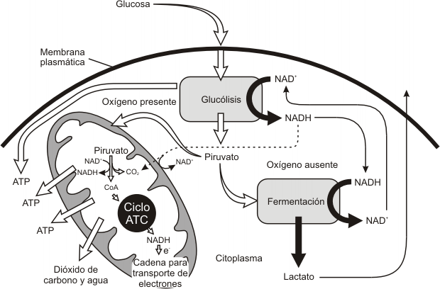 El NADH (y el FADH2) están presentes en muy pequeñas cantidades. A menos que sean rápidamente oxidados nuevamente a NAD+ (o NADP+), se detendrán las reacciones que los necesiten como coenzimas.