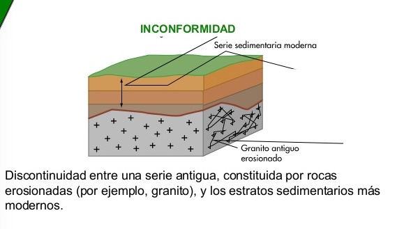 Se habla también de una laguna estratigráfica (falta de sedimentación y/o erosión) Son las más difíciles de identificar porque a primera vista parecen contactos concordantes