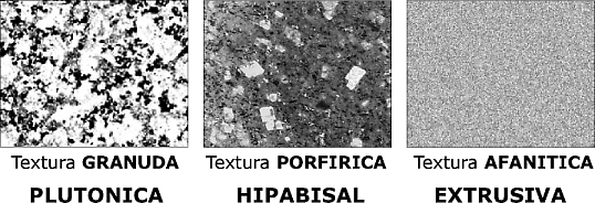 magma. Está definida por el tamaño y la forma de los minerales (cristales) que la componen, que a su vez dependen de la velocidad a la que se ha enfriado el magma.