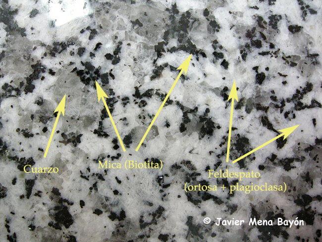 Los principales minerales que componen las rocas magmáticas son el olivino, los piroxenos, la biotita o mica negra, la moscovita o mica blanca, los feldespatos calcosódicos o plagioclasas, el feldespato sódico u ortosa, y el cuarzo
