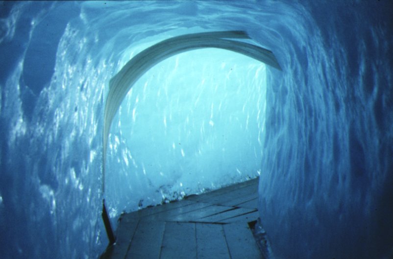 Túnel excavado en el hielo. Se aprecia la transformación de la nieve en