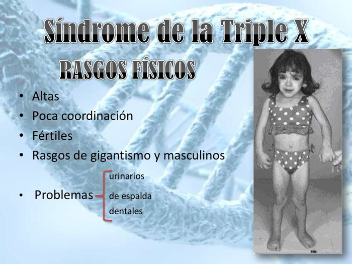 Alteración: Mujeres con 3 cromosomas X (trisomía del cromosoma X)