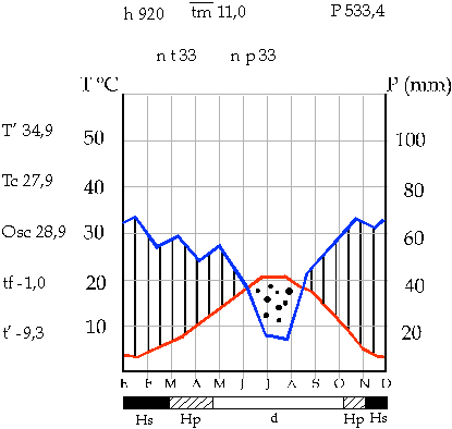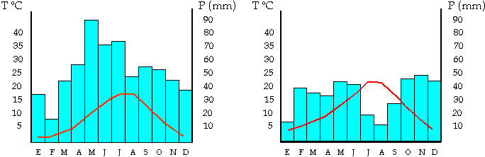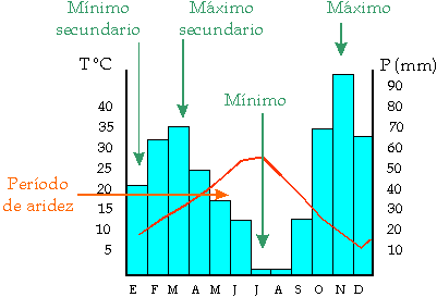 También es necesario indicar si hay períodos de aridez, que se reconocen por que la curva de las precipitaciones están por debajo de la curva de las temperaturas, y cuándo se dan esos períodos de aridez, si en verano o en invierno.