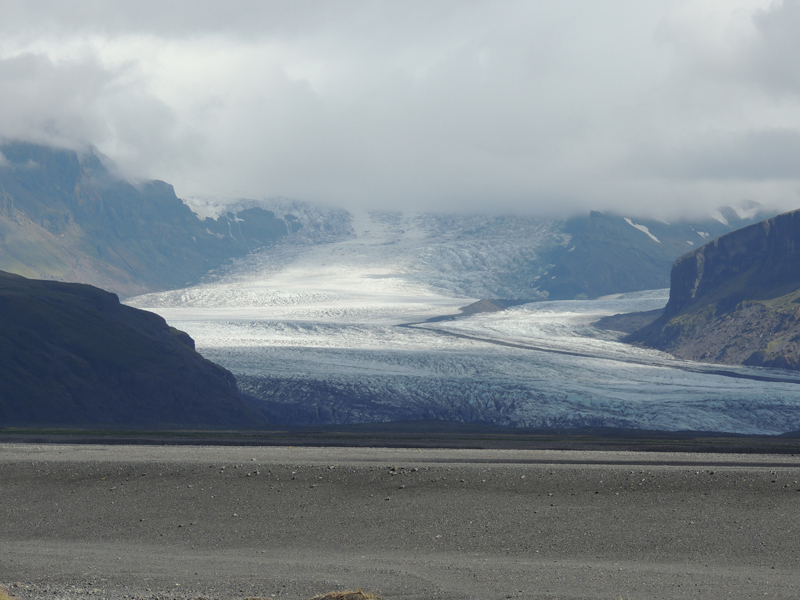 Glaciar Vatnajokull al fondo, con varias lenguas glaciares.