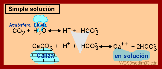ácida originando ion calcio y dióxido de carbono (sería la reacción de carbonatación que en realidad sería un tipo de disolución).