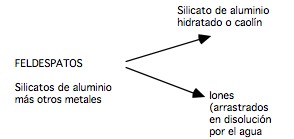 La meteorización del feldespato potásico es la siguiente: