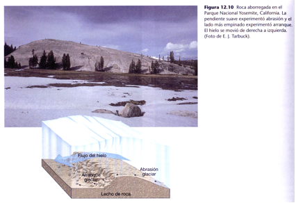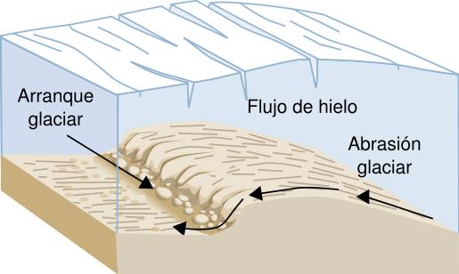 erosión del lado opuesto a medida que el hielo pasa por la