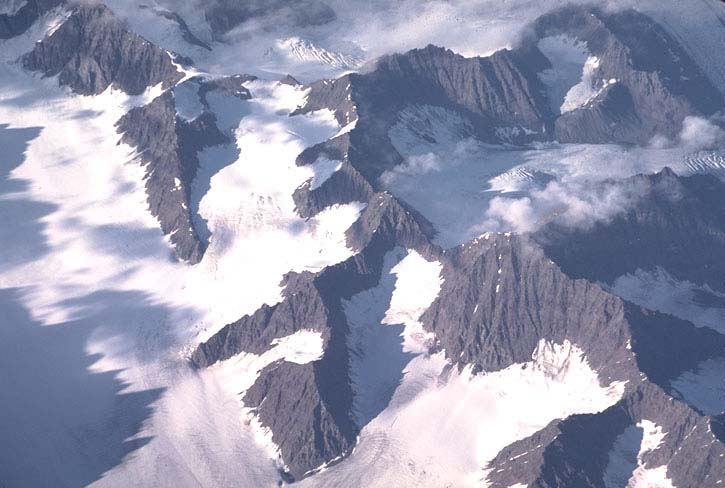 Las zonas no cubiertas por el hielo se denominan nunataks (también en los glaciares de meseta)