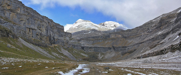 glaciar alpino es una corriente de hielo, confinada por paredes rocosas