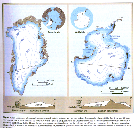 Glaciares de casquete de Groenlandia y la Antártida