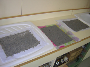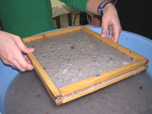 (no utilizar batidoras caseras ya que corren el riesgo de quemarse) Pasos a seguir Trituramos el papel Pasta de papel Introducimos los marcos de madera Les sacamos. Secamos el agua con una bayeta Planchamos el papel para secarle No se plancha directamente, sino sobre una tela Ya tenemos el papel bastante seco Lo dejaremos secar varios días Variaciones: Podemos colorear la pasta de papel